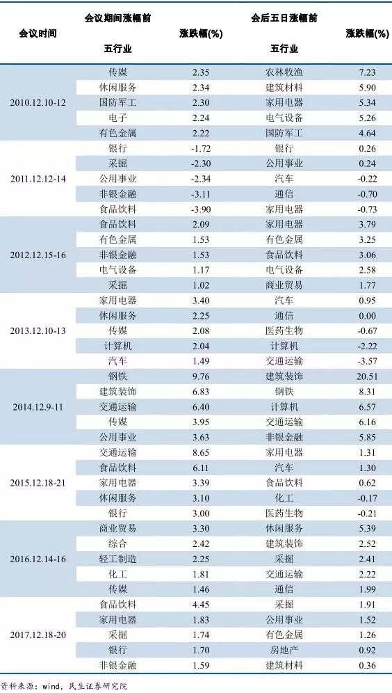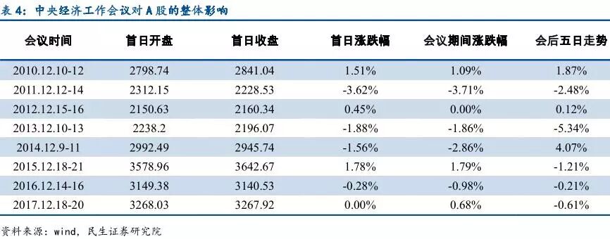 歷次中央經濟工作會議前后A股表現